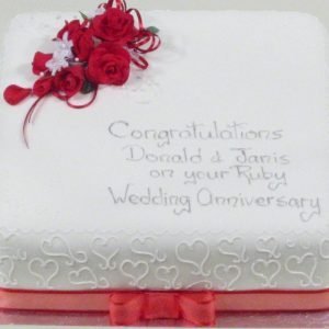 Square Cake With Flowers & Hearts